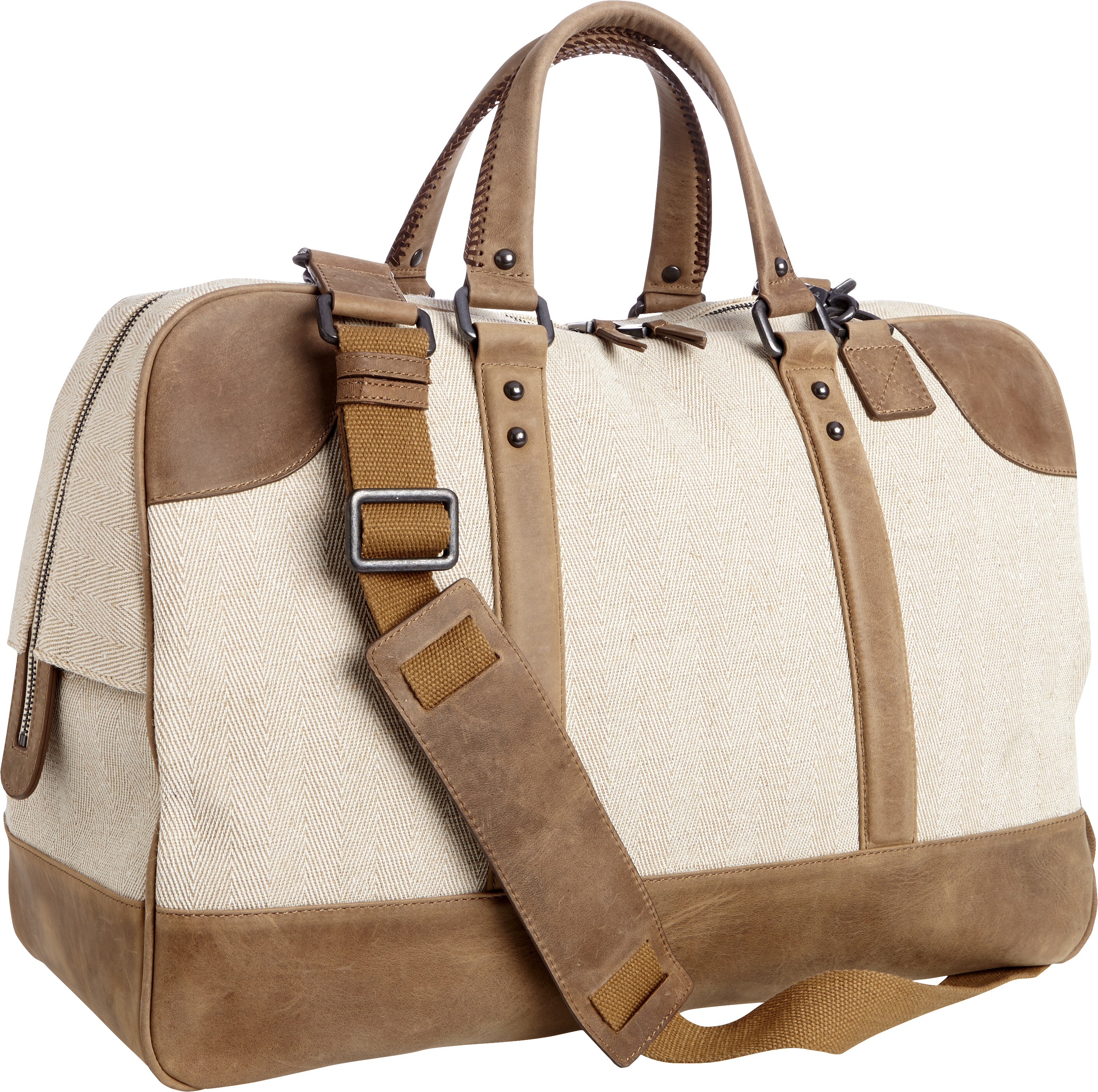classic vintage style, pewter-tone hardware and a combination fabric and leather construction. The spacious interior features a large pocket for a laptop and multiple side pockets for personal items and small electronics..