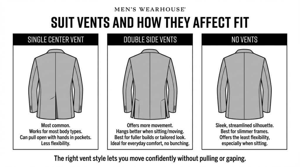 For everyday comfort, double vents are your best bet. They distribute fabric naturally and won’t bunch or flare when you’re active. Whatever your shape, the right vent style should let you move confidently without pulling or gaping.