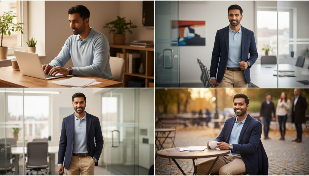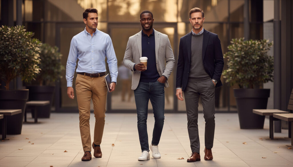 Start with the fundamentals—well-fitted chinos, quality button-down shirts, and versatile blazers—then build your wardrobe strategically around pieces that work in multiple scenarios. Remember the 3-piece versatility rule: every garment should function effectively in three different professional situations. This approach maximizes value while ensuring you’re prepared for any workplace challenge 2025 presents.