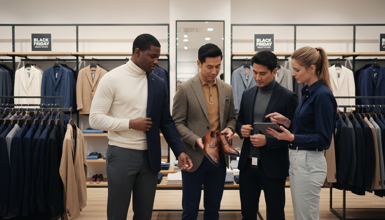 Black Friday retailers exploit cognitive biases through anchoring inflated MSRP prices, artificial scarcity timers, and decoy pricing designed to trigger impulse purchases. Counter these tactics by creating pre-set capsule wardrobe lists, researching price history on fashion investment pieces, and applying value-per-wear calculations before committing. Focus on genuine black friday menswear deals rather than manufactured urgency- quality wool suits and leather shoes deliver lasting value regardless of countdown pressure.