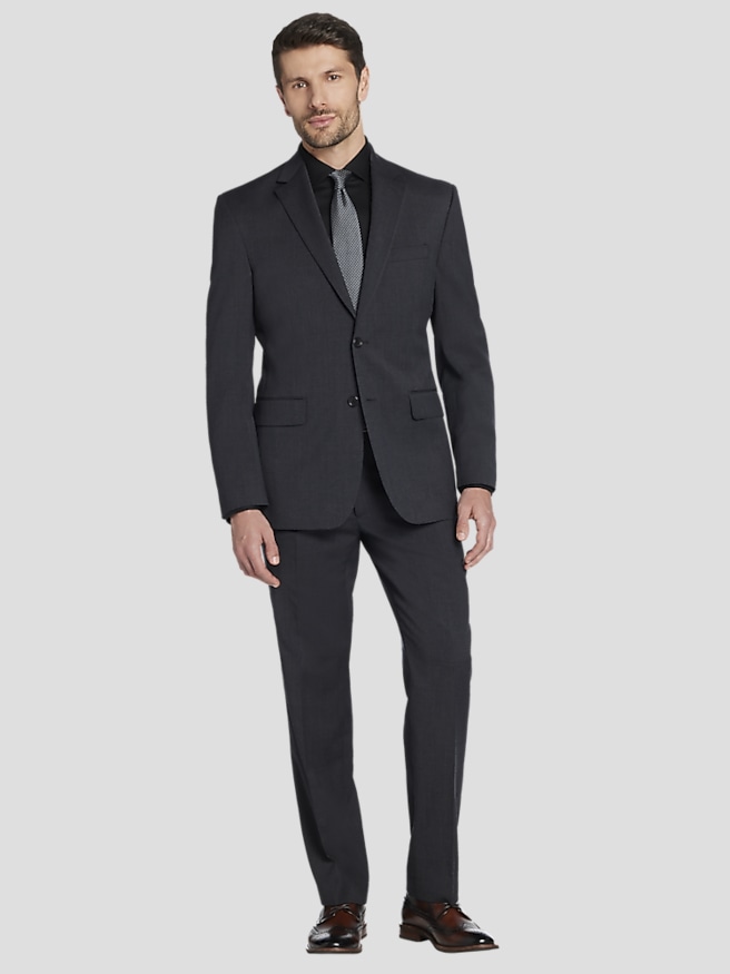 Ties are an essential accessory that can elevate the look of a grey suit. For a classic and formal appearance, pair a grey suit with a navy or burgundy tie. These rich colors provide a striking contrast that enhances the overall elegance of the outfit. For a more modern and stylish look, consider ties in shades of silver, black, or even bold patterns like paisley or geometric designs. The key is to ensure the tie complements both the suit and the dress shirt, creating a cohesive and well-coordinated ensemble. Men's Wearhouse offers a wide range of ties that can add the perfect finishing touch to your grey suit.