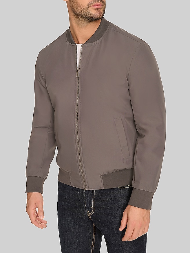 Yes! A well-fitted bomber or utility jacket can easily be dressed up with a collared shirt and tailored pants.