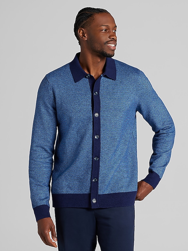 Modern Fit Jacquard Shirt Front Sweater
