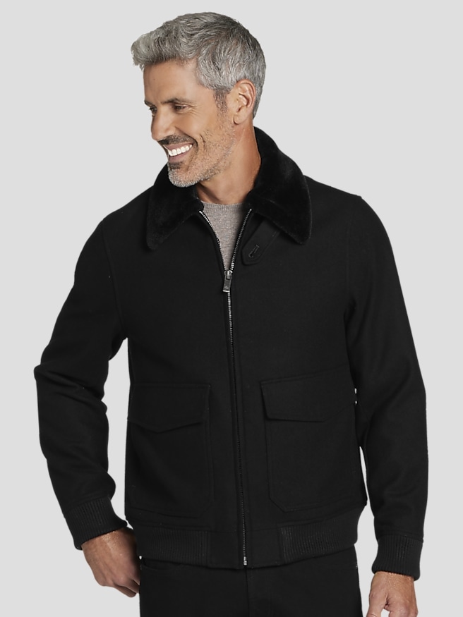 Modern Fit Faux Fur Collar Wool Casual Jacket