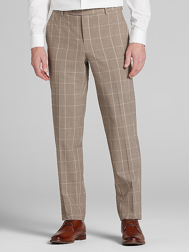 Slim Fit Windowpane Plaid Suit Pants
