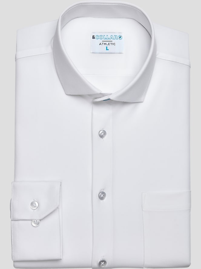 Own the room - or the dance floor - in this athletic-fit dress shirt designed for movers and shakers. With four-way stretch and a slim, tailored cut, it's got your back (and shoulders) when things get lively. Moisture-wicking and stain-repellent, it's as low-maintenance as your favorite weekend tee - but way more dapper. Perfect for black-tie grooms, office aces, or anyone who refuses to sacrifice comfort for style. Oh, and it's washable, so you can skip the dry cleaner drama. Win-win.