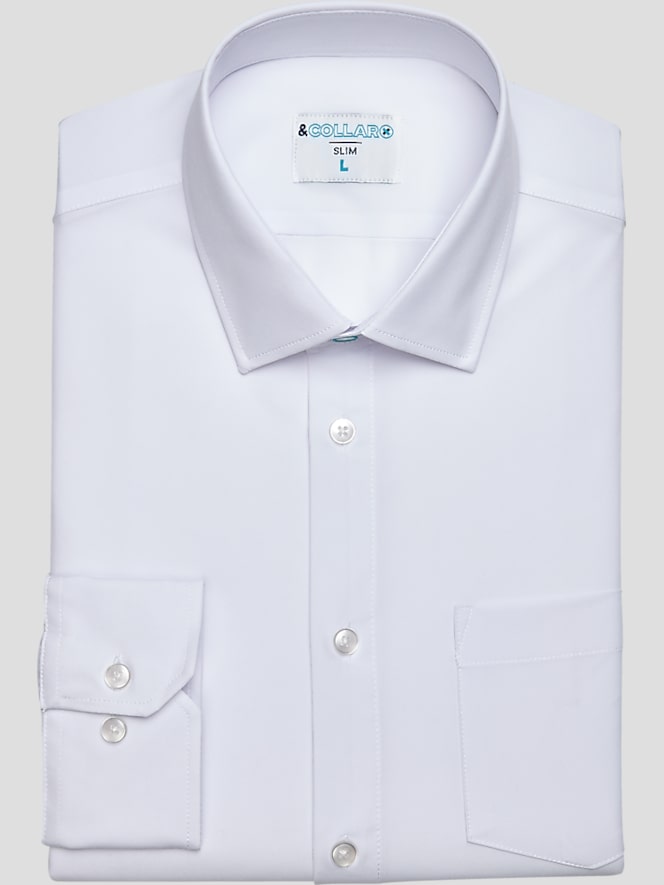 When your shirt game is stronger than your coffee, you know you're winning. This slim-fit dress shirt is a pro at blending style and function - think moisture-wicking magic, stain-repelling superpowers, and 4-way stretch for all-day comfort. Whether you're running the boardroom, saying "I do," or just being the sharpest guy in the room, this oxford beauty has your back. Bonus: It's washable, so spills and stress are no match. Wear it, own it, love it.