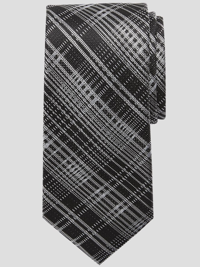 Made from a luxurious silk blend, this tie features a captivating plaid pattern composed of stitched lines. With its visually intriguing effect, this unique design adds a contemporary twist to a classic style. It's the perfect accessory to take your look to the next level.