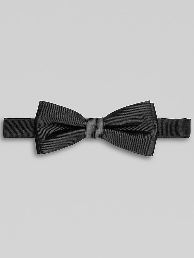 Ultra fine ribbing and double bows add depth and texture to this debonaire bow tie from Calvin Klein. It is conveniently pre-tied so you can focus less on fiddling with your look and more on having fun at your formal or upscale occasion.