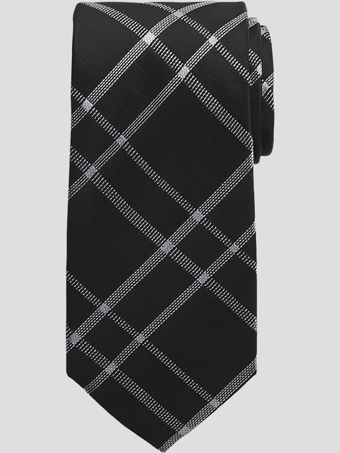 Finely woven from a soft silk and Polyester blend, this sleek Calvin Klein tie is styled with a stitched plaid pattern for a contemporary look.