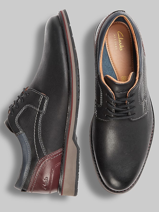 Polished yet relaxed, the Clarks Monahan Oxford brings modern comfort to a timeless silhouette. Crafted from premium leather, it features clean lines, subtle stitching, and contrast laces for a touch of casual flair. The lightweight EVA midsole and cushioned footbed provide all-day support, while the rubber outsole offers durable traction. Finished with a classic lace-up closure, this versatile Oxford transitions effortlessly from weekday meetings to weekend outings with smart-casual ease.