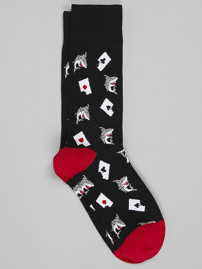 A bold choice for game night, these cotton-blend socks feature a spirited card shark motif. The comfortable, breathable fabric ensures you stay cool even under pressure, while the playful design adds a winning touch to your outfit.