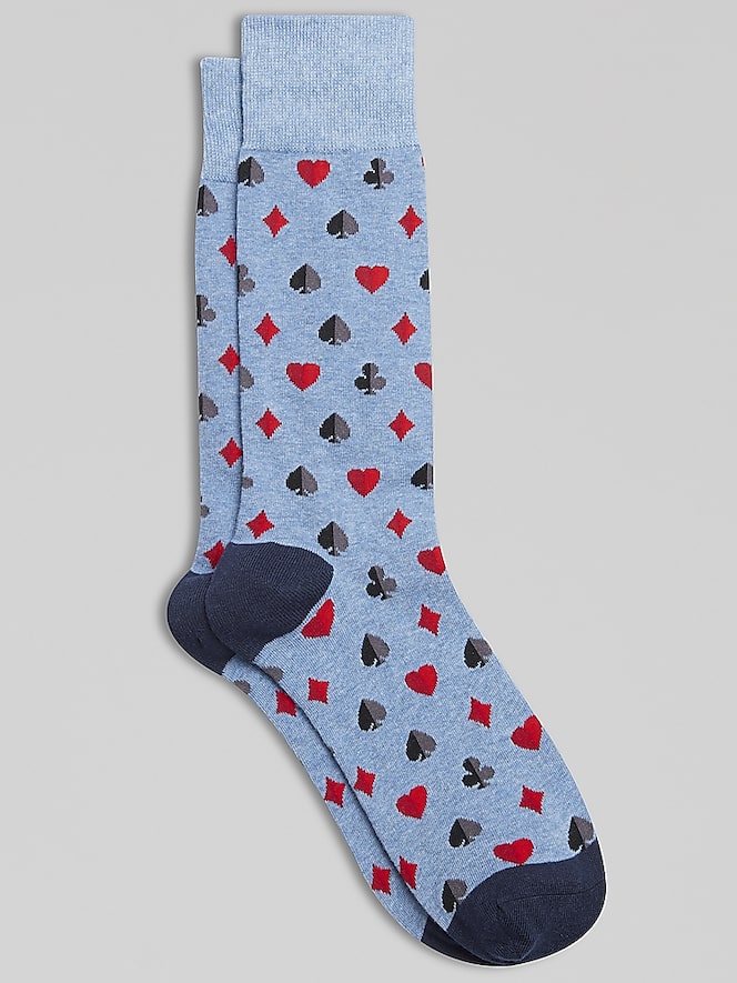 Add a winning touch to your outfit with these cotton-blend socks featuring a card suit pattern. Designed for comfort and breathability, they bring personality and fun to your everyday style. Whether you're at the office or enjoying a game night, this pair is a perfect blend of practicality and flair.