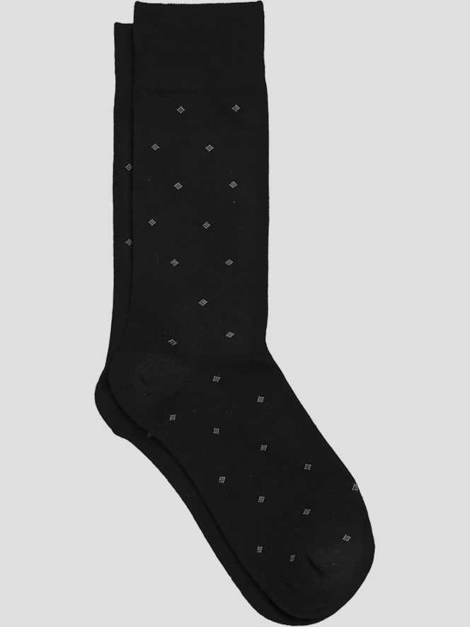 Put a little pep in your step with these Diamond Dot Socks. Featuring a timeless small-scale pattern, they strike the perfect blend of playful and classic. The navy tone keeps it versatile, while the combed cotton promises all-day comfort that's smooth as butter. With reinforced heels and toes, they're built to last as long as your love for them. Mid-calf height makes them the ideal companion for everything from dress shoes to casual kicks. Bonus? They're as stylish as they are sturdy. Go ahead—sock it to your wardrobe.