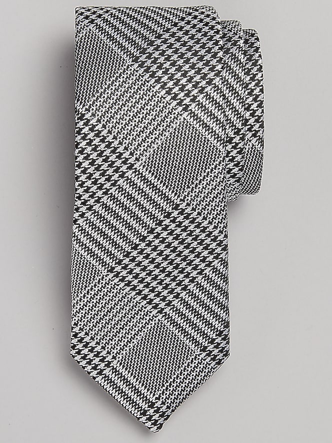 A modern take on a classic, this tie offers a sophisticated and distinctive look. The traditional houndstooth pattern is presented in a unique sampler design, which adds visual depth and a touch of contemporary flair. This tie is an ideal choice for adding a refined, eye-catching detail to your suit or dress shirt.