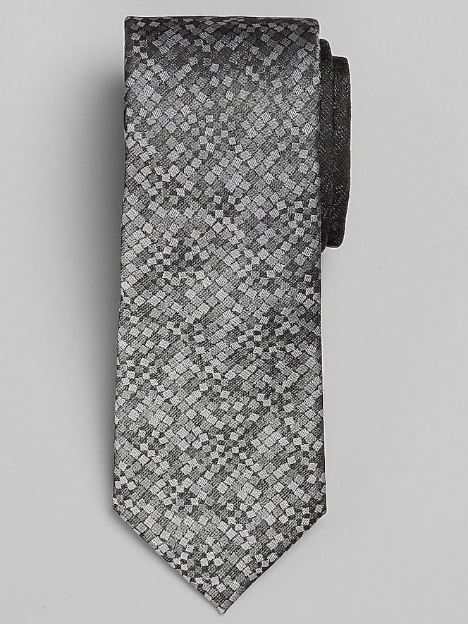 A modern take on geometric design, this tie features a tumbling cubes pattern that adds depth and dimension to your look. Its slim silhouette offers a contemporary feel, making it a standout choice for both professional and dress wear occasions. Woven with care, it's a refined accent for your tailored ensembles.