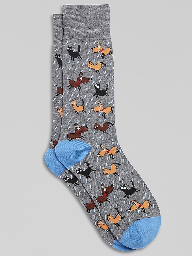 Brighten up a rainy day with these combed cotton socks, featuring a whimsical pattern of cats and dogs dashing through the rain. Crafted for comfort from soft, breathable cotton with a touch of stretch, they're as fun as they are functional.