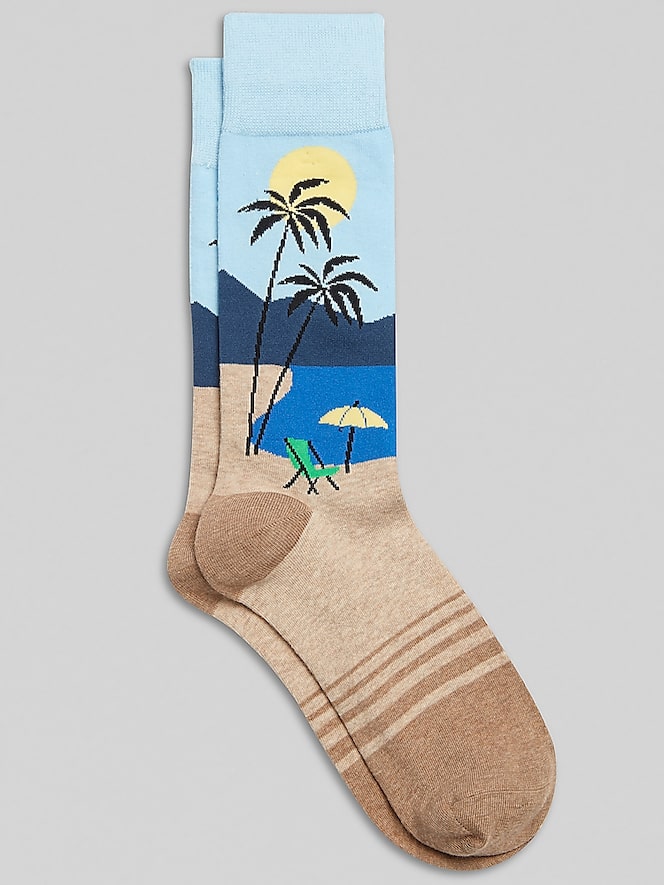 What could be better than a cool ocean breeze and swaying palms to get you in a vacation state of mind? Crafted from comfy combed cotton, these socks feature a tropical-inspired scene that will have you dreaming of your next getaway.