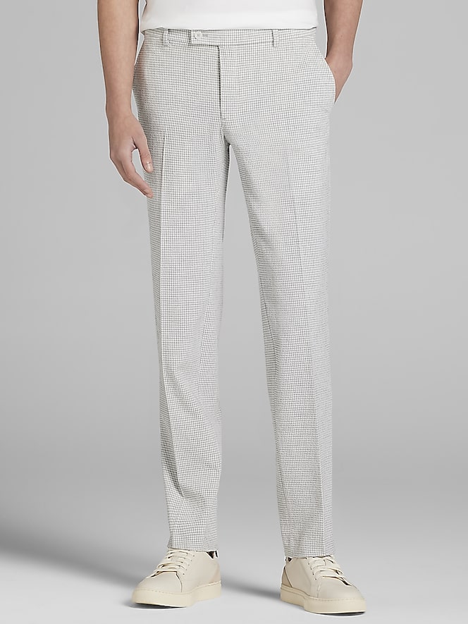 Cool, classic, and a bit of Southern charm, these gingham seersucker suit pants keep your style crisp without breaking a sweat. Designed with a sleek skinny fit and a neutral grey-and-white palette, they're ready for derby days, homecoming soires, or any moment that calls for understated elegance. The recycled polyester blend and minimalist details nod to sustainability without compromising on comfort. They're light, breathable, and versatile enough for both work and play. Pair them with the matching jacket or mix and match for a sharp, modern vibe. Because effortless style shouldn't demand all the effort.