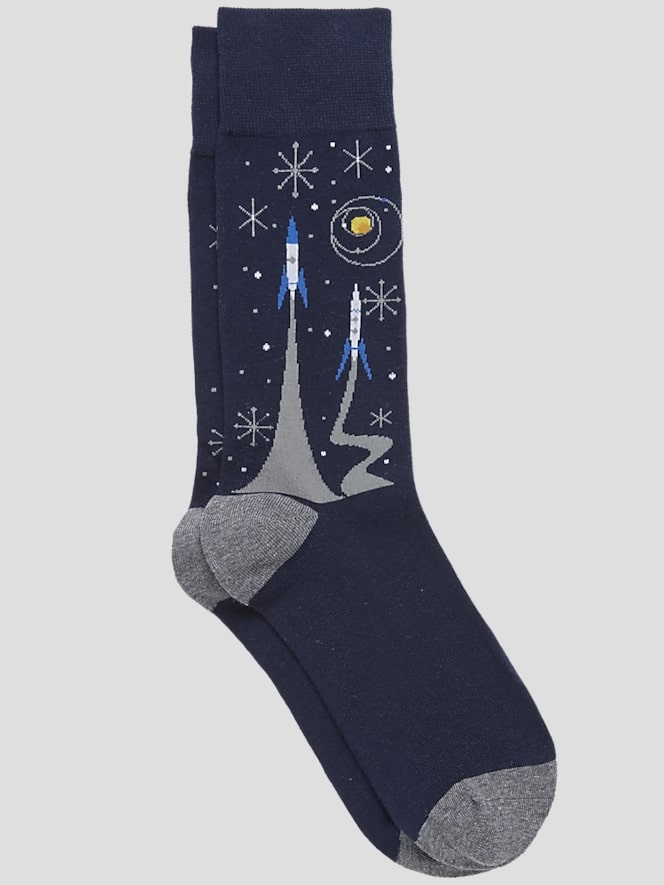 Blast off into style with these spaceship socks! Perfect for when your feet need a little interstellar inspiration, they're made for casual days that deserve a dose of fun. Their cotton-blend fabric keeps things breathable, while the mid-calf fit ensures you'll stay comfy all day long (even in zero gravity). The whimsical rocket graphic is here to launch your outfit from ordinary to out-of-this-world. Ideal as a gift for him or a fun treat for yourself—because socks can have star power too.