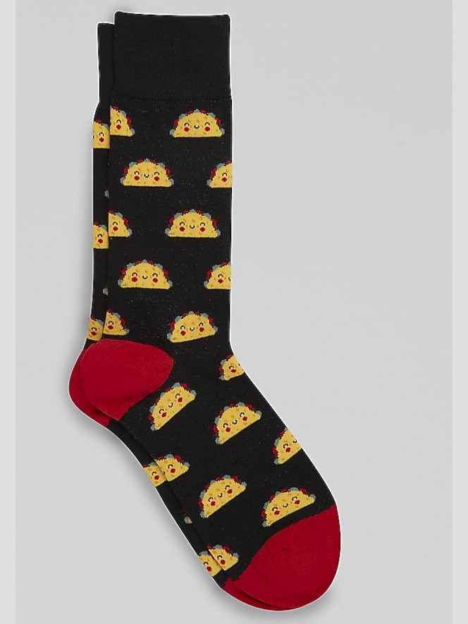 Add a festive twist to your wardrobe with these combed cotton socks featuring an all-over pattern of smiling tacos. Soft, breathable, and durable, theyre perfect for bringing a playful vibe to your everyday outfits. Whether it's Taco Tuesday or just a day to show off your fun side, these socks are sure to spark smiles and start conversations.