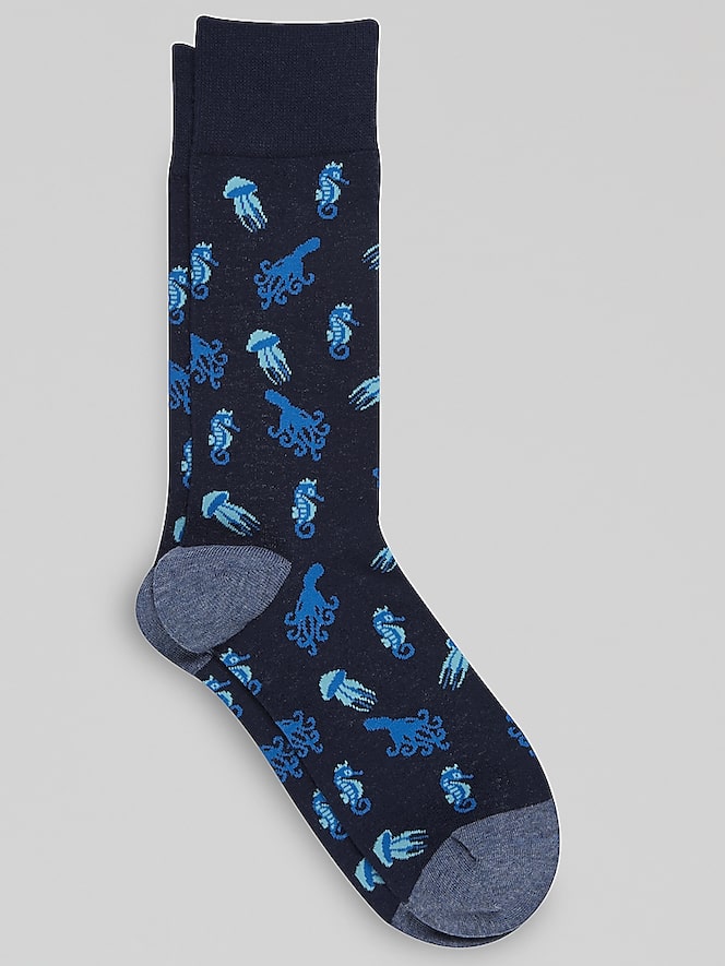Dive into fun with these combed cotton socks featuring an all-over pattern of underwater sea creatures. From jellyfish to seahorses, the design brings the vibrant ocean to life. Made from soft, breathable combed cotton, these socks offer both comfort and durability for all-day wear. Perfect for ocean lovers and anyone looking to add a splash of whimsy to their wardrobe.