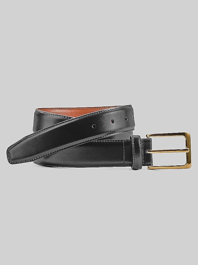 Crafted from genuine leather with a stitched edge, this smooth belt delivers classic style and everyday versatility. The polished buckle adds a touch of shine, while a double leather keeper ensures a neat, secure fit. At 1 3/8-inch wide, it's the perfect partner for everything from tailored dress pants to your favorite denim.