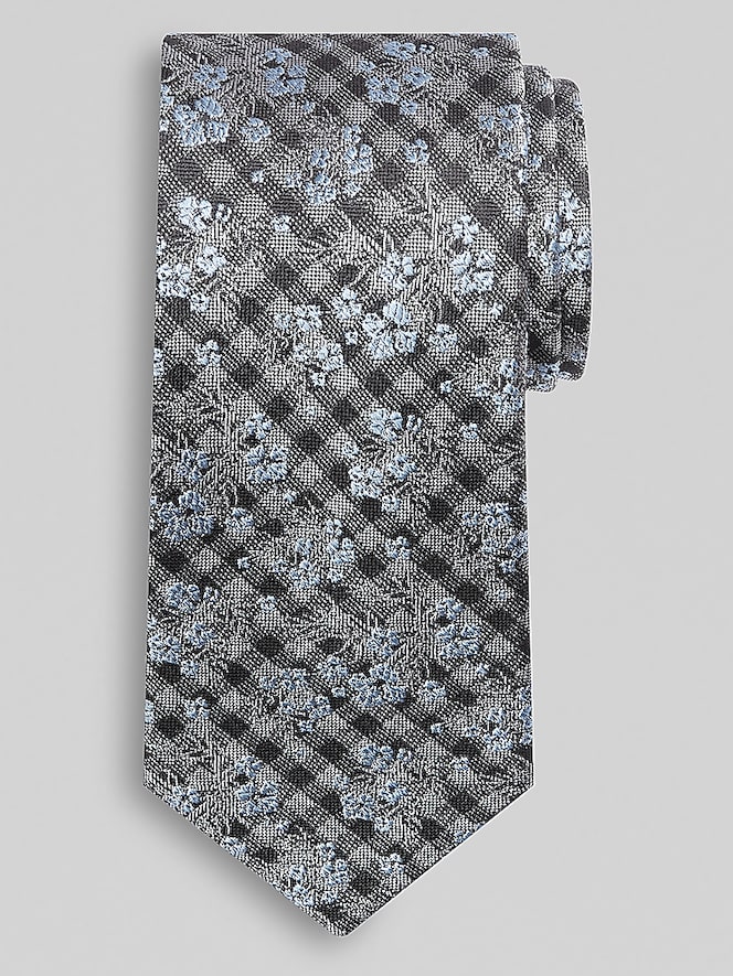 Add the ideal finishing touch to your carefully crafted look with this fine silk tie by Joseph Abboud. This classic tie features a detailed check and floral pattern that will coordinate with your favorite ensembles.