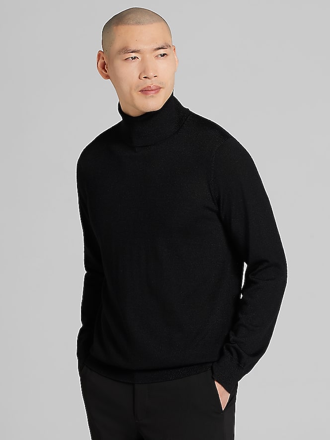 This turtleneck blends luxurious Merino wool with innovative 37.5 polyester for a refined look that's built for comfort. Naturally soft and breathable, the fabric helps regulate body temperature and manage moisture, making it ideal for layering or wearing solo. Lightweight and performance-driven, it's a modern take on a classic cold-weather staple.