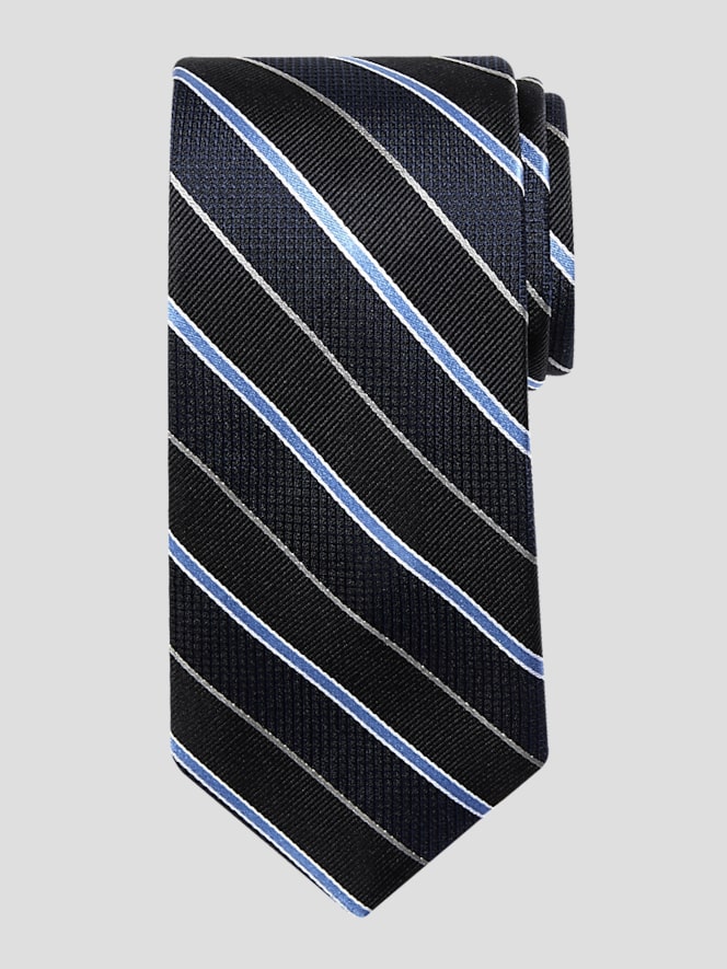 Elevate your look with a captivating interplay of pattern and dimension. Imagine a luxurious silk tie where stripes come alive with a variety of textures. Despite its textural intrigue, this accessory remains versatile. Pair it with a solid shirt for balance or let it be the star with a patterned shirt in complementary colors. Perfect for formal occasions, business casual, or dressed-up weekend looks.