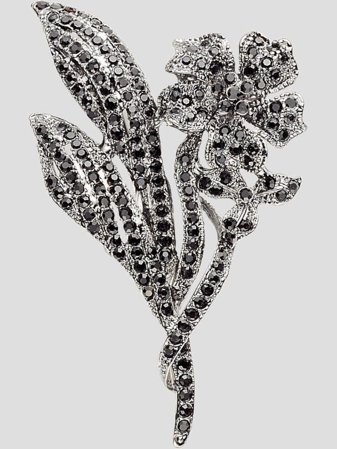 Petals, sparkle, and a touch of drama—this lapel pin delivers big main-character energy. With its intricate pave crystals and a gunmetal finish, it's your not-so-subtle ode to glam. Whether it's pinned on a blazer, scarf, or evening dress, it whispers elegance and shouts style. Perfect for cocktail soirées or anytime you feel like reigning supreme in the fashion game.