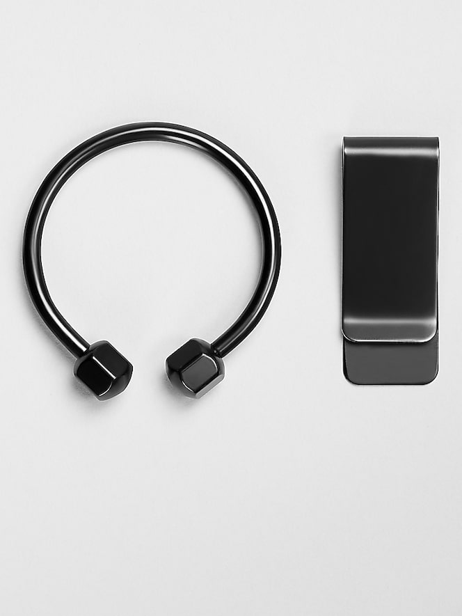 Keep your essentials streamlined and secure with the Pronto Uomo C Key Ring and Money Clip holder set. The innovative C-Ring design ensures your keys are not only gathered and secure but also easily accessible when you're rummaging through your bag. Complementing this, the compact money clip offers a sleek alternative to bulky wallets, perfect for those who prefer to carry just the necessities. Both pieces are crafted from durable metal, making them shock, corrosion, and water resistant, ready for whatever your day throws at them. The key ring measures a convenient 2 x 2 x 0.35" with removable knobs, while the money clip comes in at a slim 0.75 x 2" x 0.5", ensuring a minimalist footprint for your daily carry.